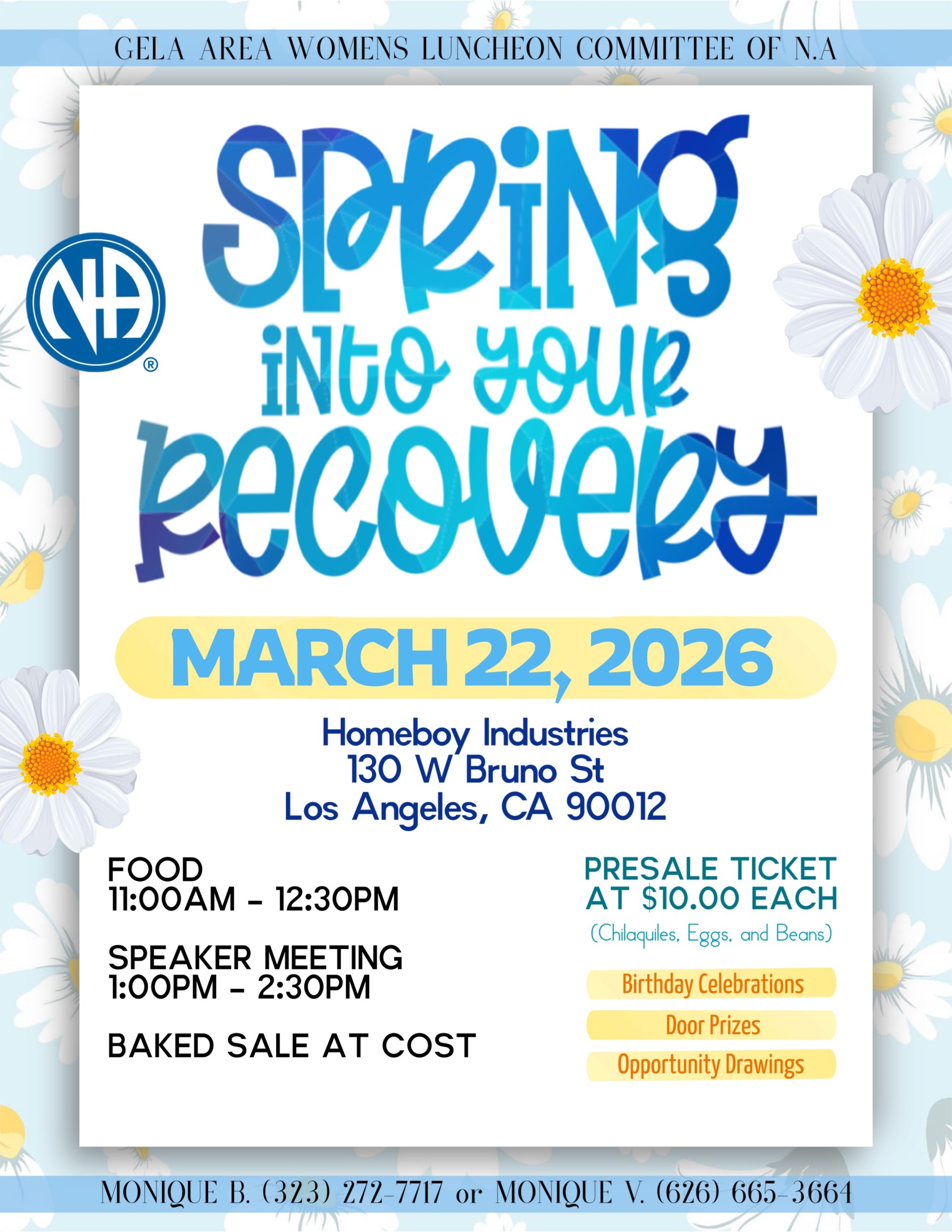 March 23, 2026(1 event) Spring Into Your Recover 11:00 pm – Homeboy Industries |